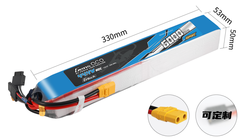 Sport Series RC LiHV Battery 12S1P | 45.6V | 6000mAh | 80C | 2*G-Tech | 330×53×50mm | 1660g |