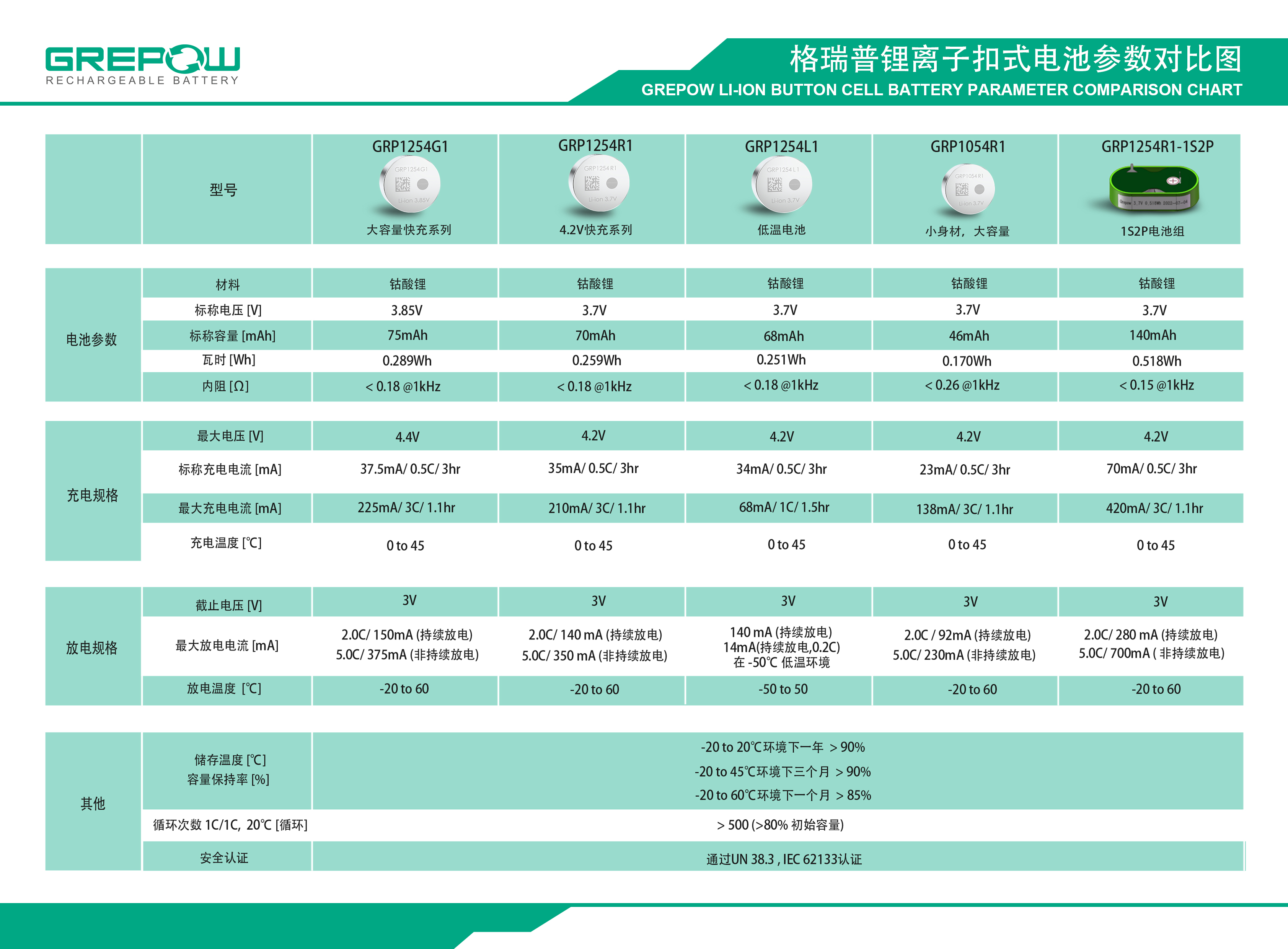 格瑞普扣式電池 | GRP1254R1 規(guī)格書